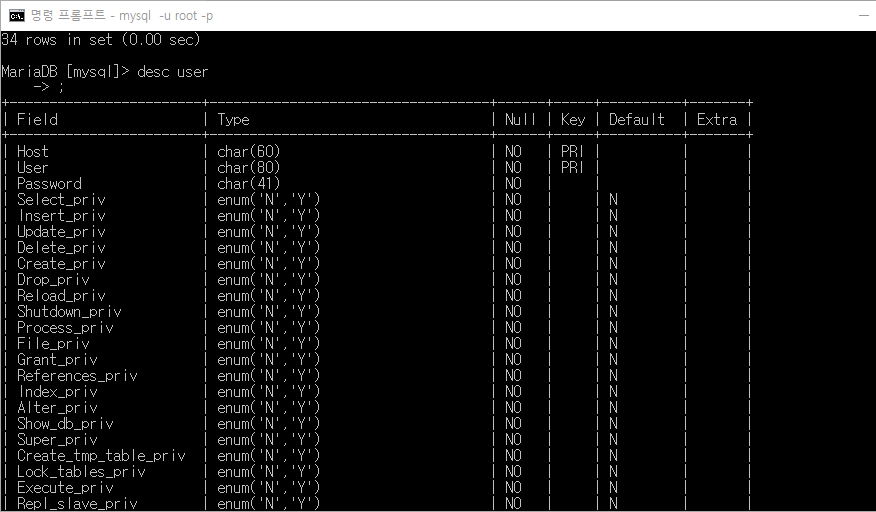 - desc명령어로 테이블의 구조자체를 검색해 볼 수 있다.